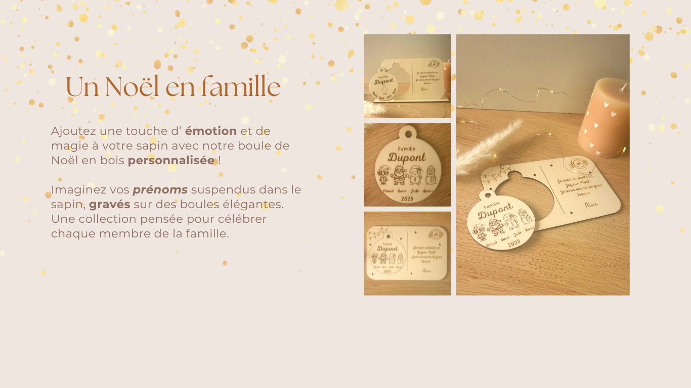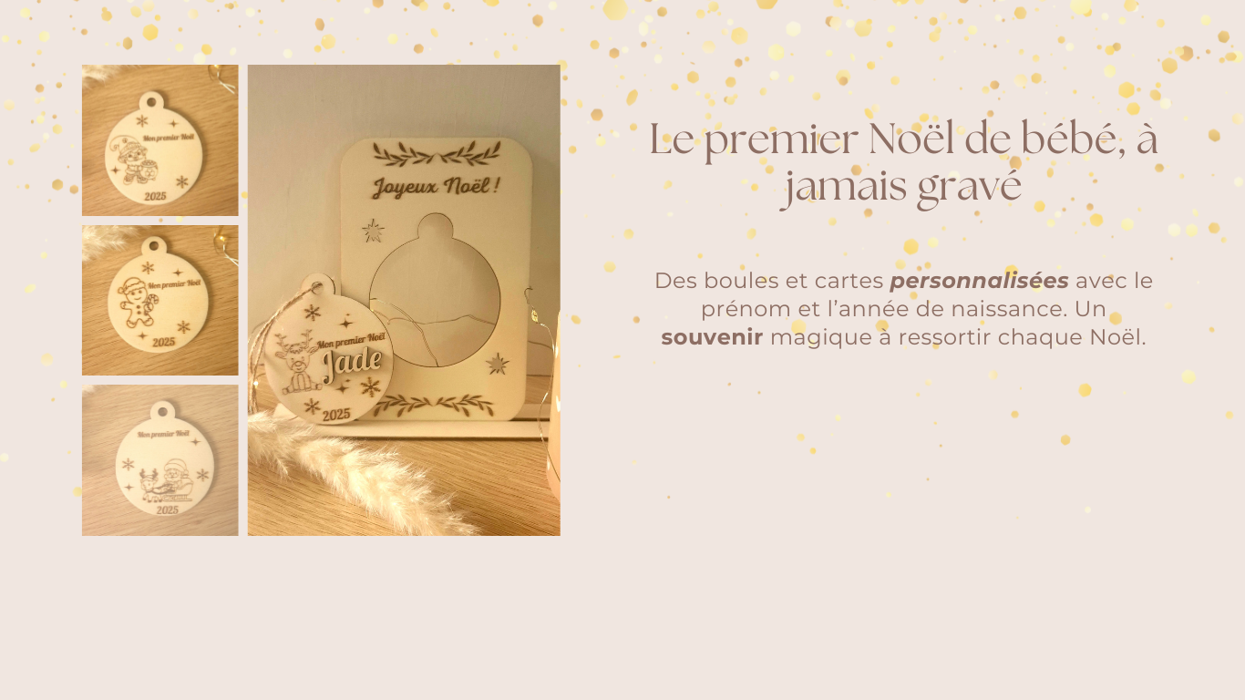 Magnifique ! J’ai commandé la version “1er Noël Bébé” pour la naissance de notre petit Jules, et le résultat est juste parfait. Le bois est doux, la gravure très fine et la carte de vœux ajoute vraiment une touche magique. On va garder ça précieusement chaque année sur le sapin