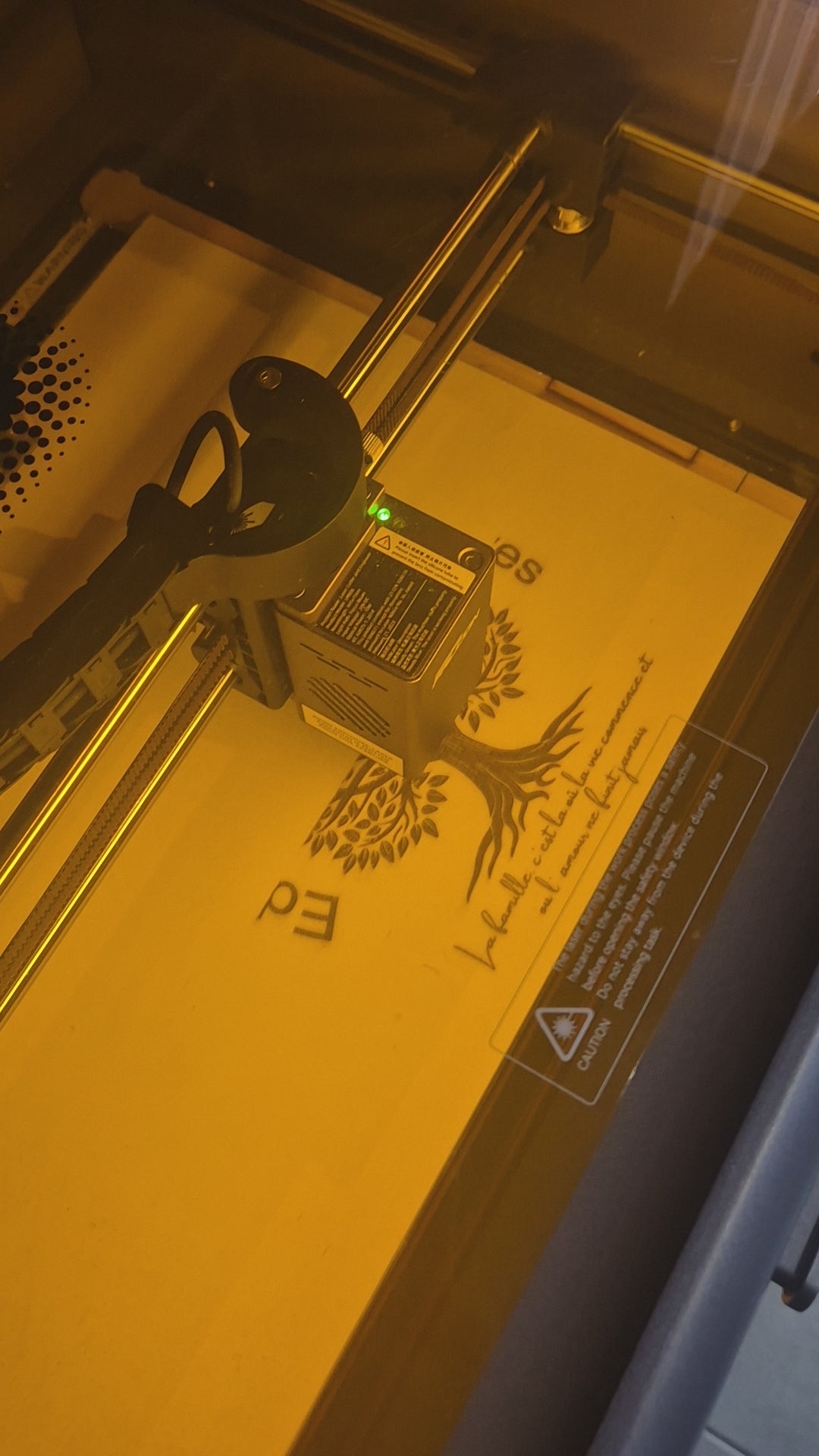 Chaque pièce est gravée avec soin dans notre atelier, sur un bois clair de 20 cm de diamètre, pour un rendu doux, élégant et intemporel.