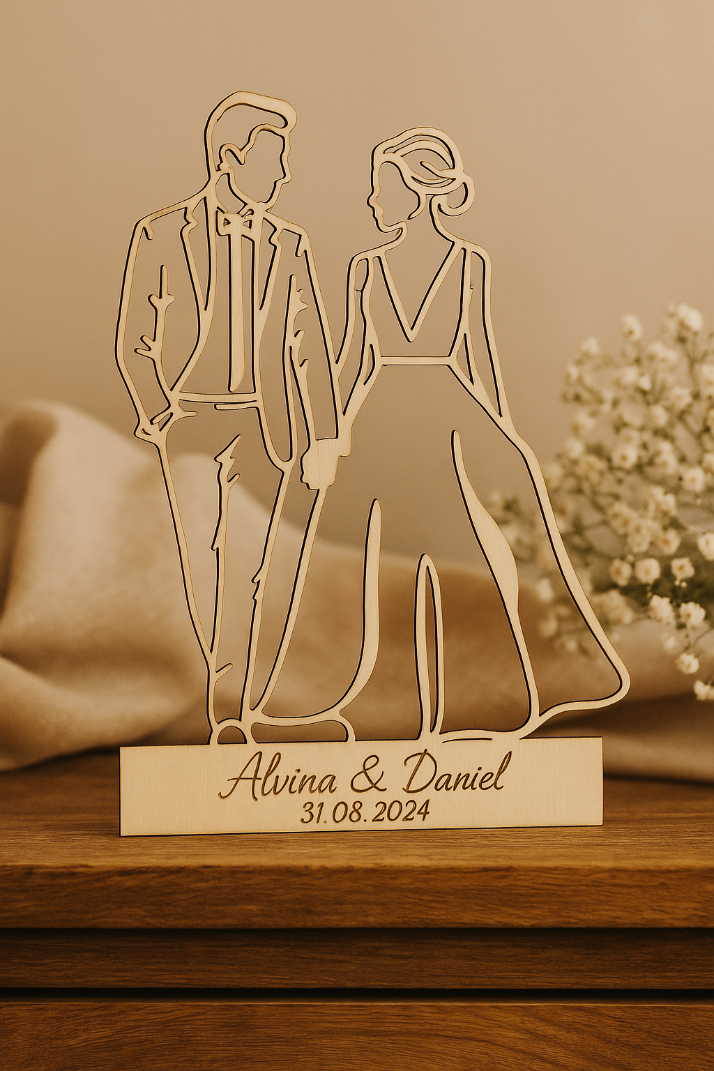 Offrez un souvenir inoubliable avec cette magnifique silhouette de couple en bois de peuplier, gravée avec finesse. Idéale pour un mariage, un anniversaire de rencontre ou simplement célébrer l’amour. Une décoration unique, délicate et pleine d’émotion.